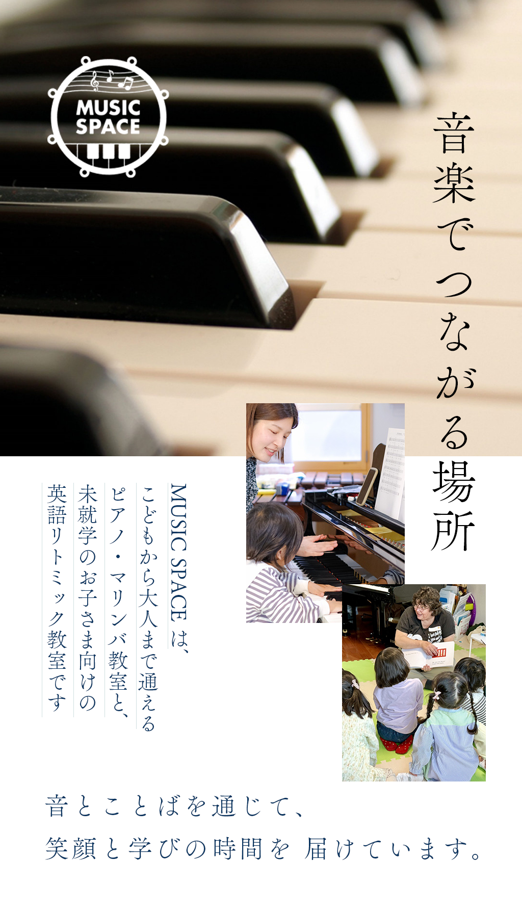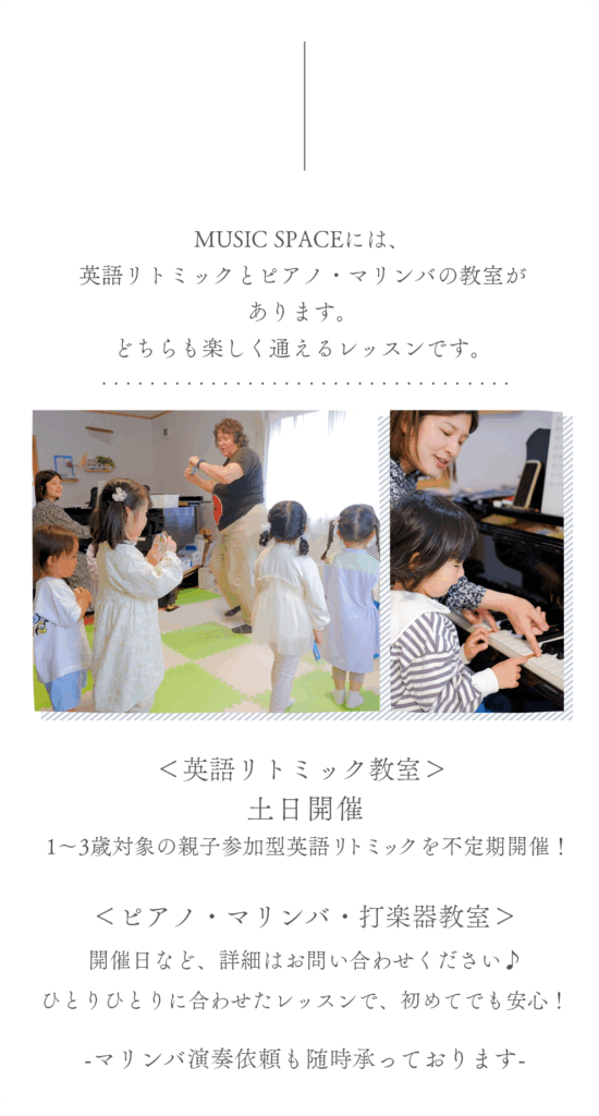 MUSIC SPACE は、こどもから大人まで通えるピアノ・マリンバ教室と、未就学のお子さま向けの英語リトミック教室です。